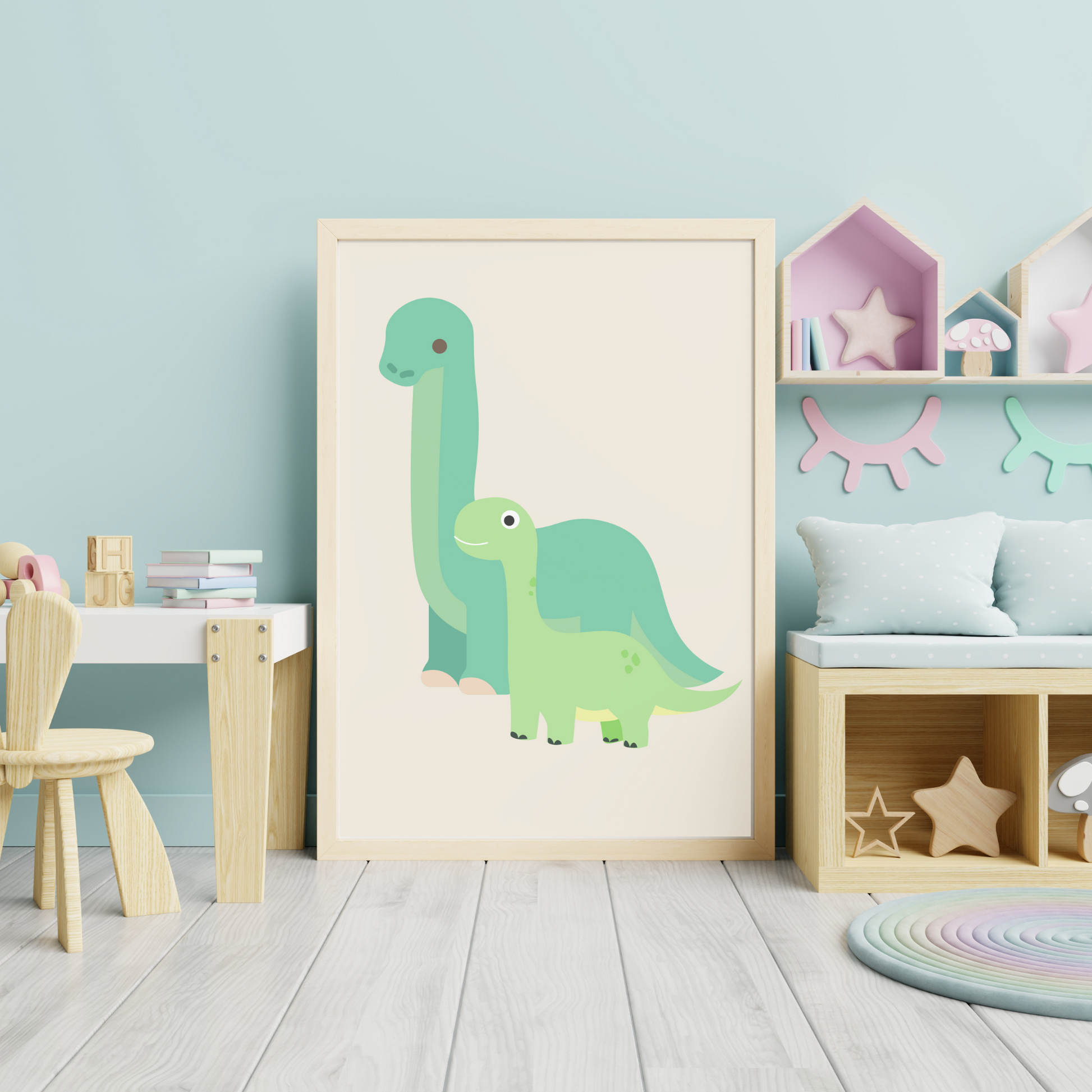 Gjør barnerommet til et inspirerende og kreativt fristed med fargerike plakater. Disse plakatene er ikke bare dekorative, men også pedagogiske verktøy som kan vekke barnas nysgjerrighet og interesse for dyreliv. Denne plakaten er en del av en serie med dinosaurplakater, som jeg designet til vår sønns barnerom.