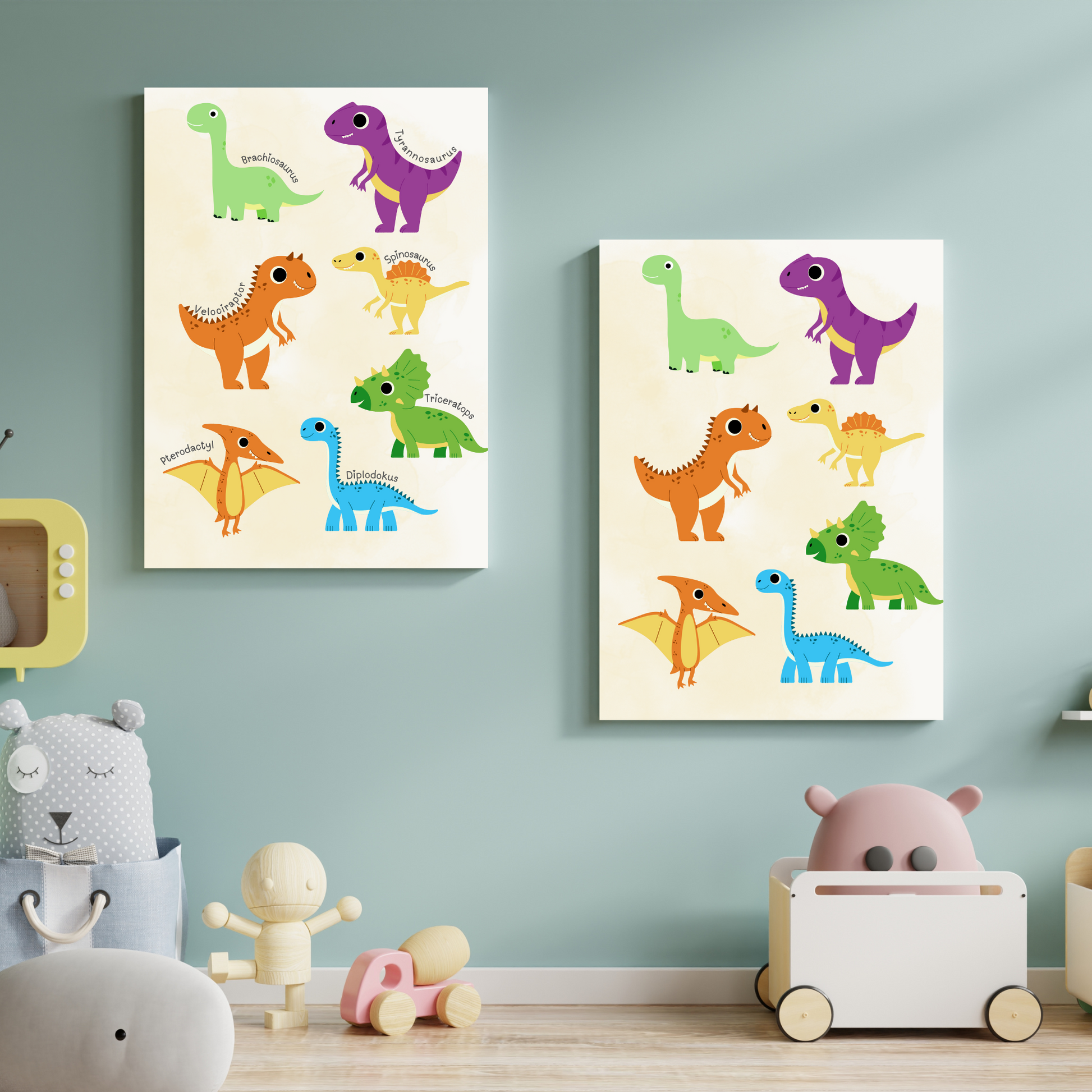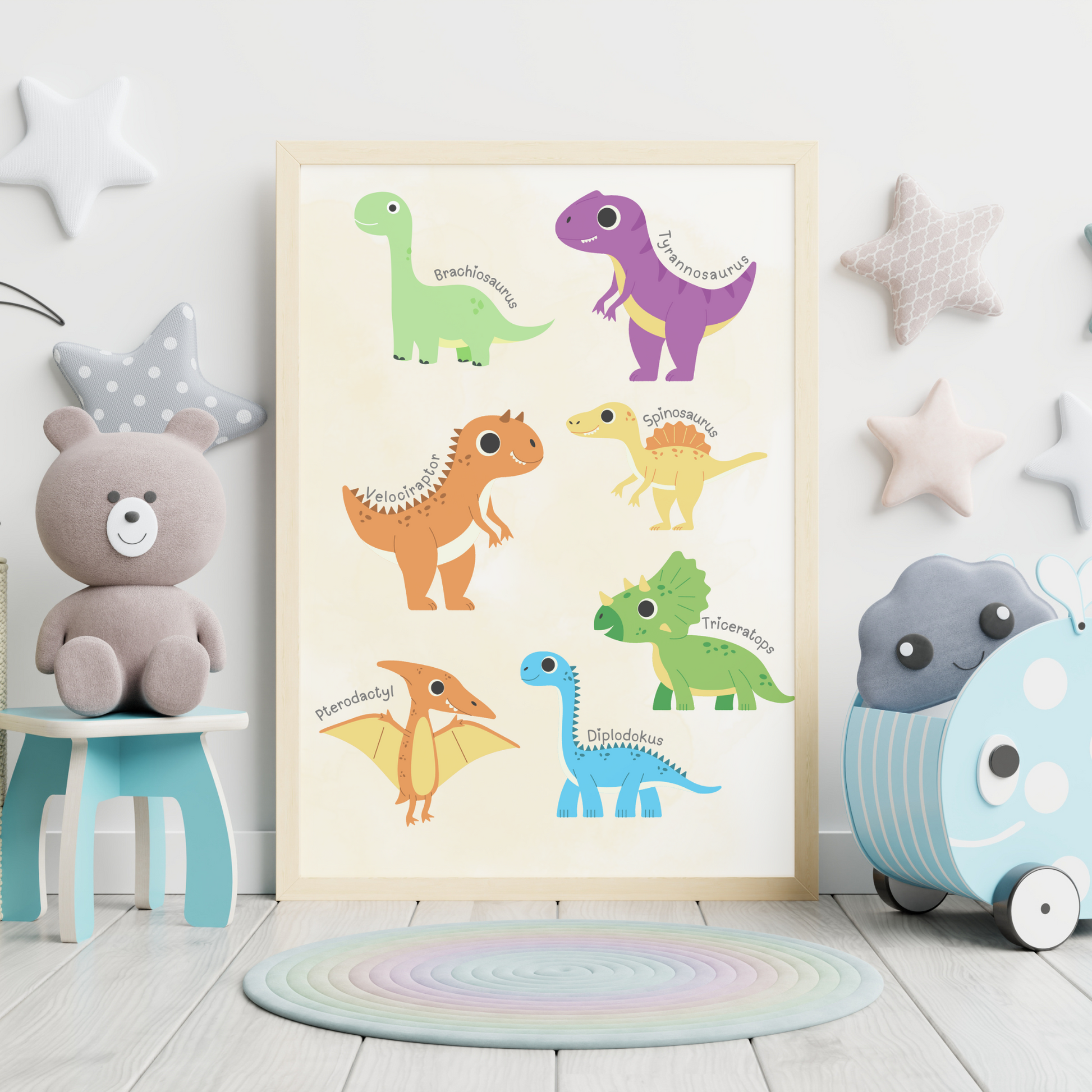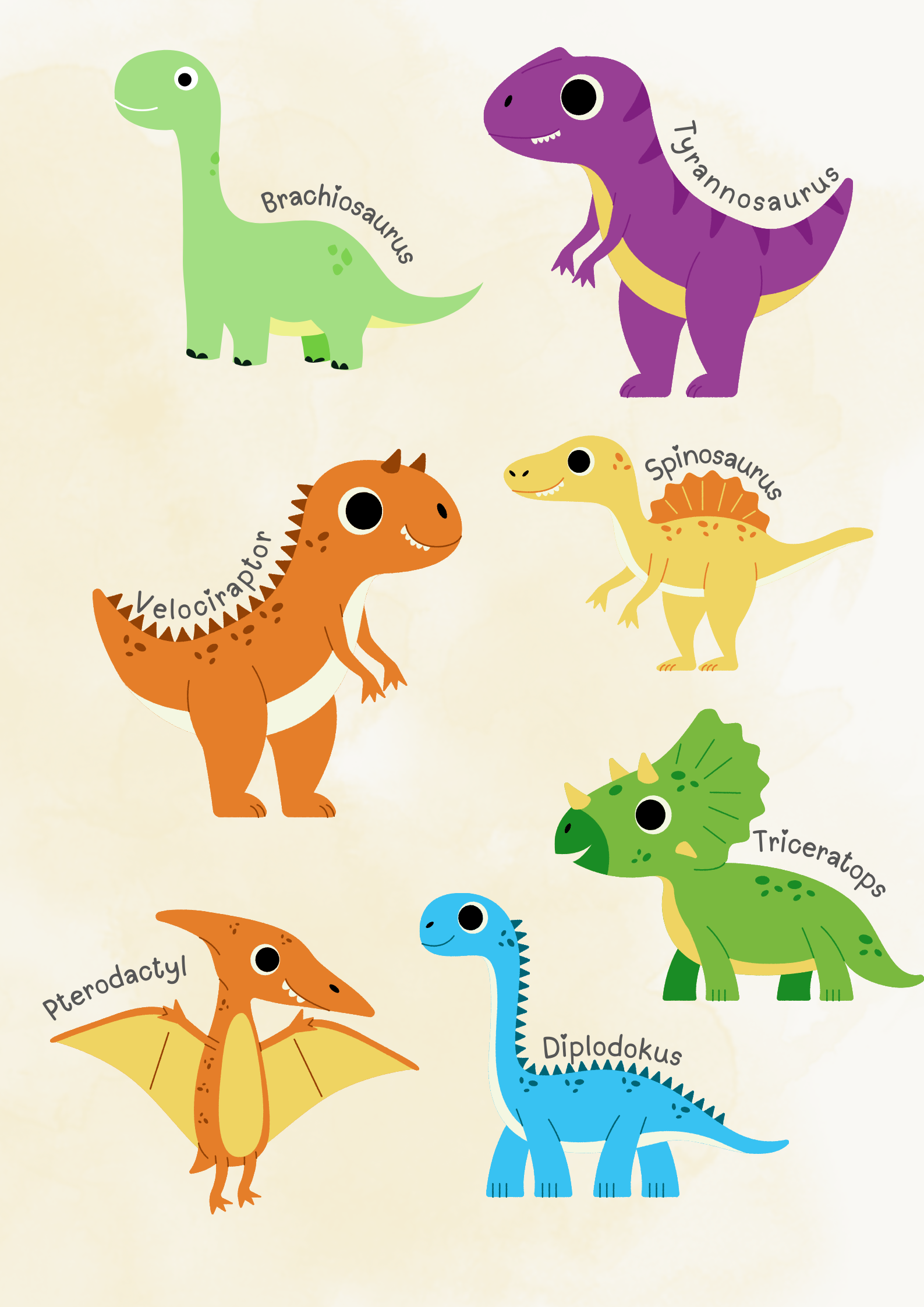 Gjør barnerommet til et inspirerende og kreativt fristed med fargerike plakater. Disse plakatene er ikke bare dekorative, men også pedagogiske verktøy som kan vekke barnas nysgjerrighet og interesse for dyreliv. Denne plakaten er en del av en serie med dinosaurplakater, som jeg designet til vår sønns barnerom.