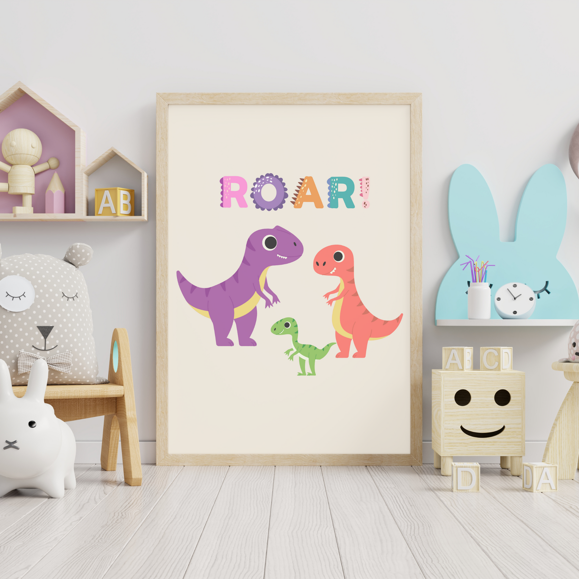 Gjør barnerommet til et inspirerende og kreativt fristed med fargerike plakater. Disse plakatene er ikke bare dekorative, men også pedagogiske verktøy som kan vekke barnas nysgjerrighet og interesse for dyreliv. Denne plakaten er en del av en serie med dinosaurplakater, som jeg designet til vår sønns barnerom.