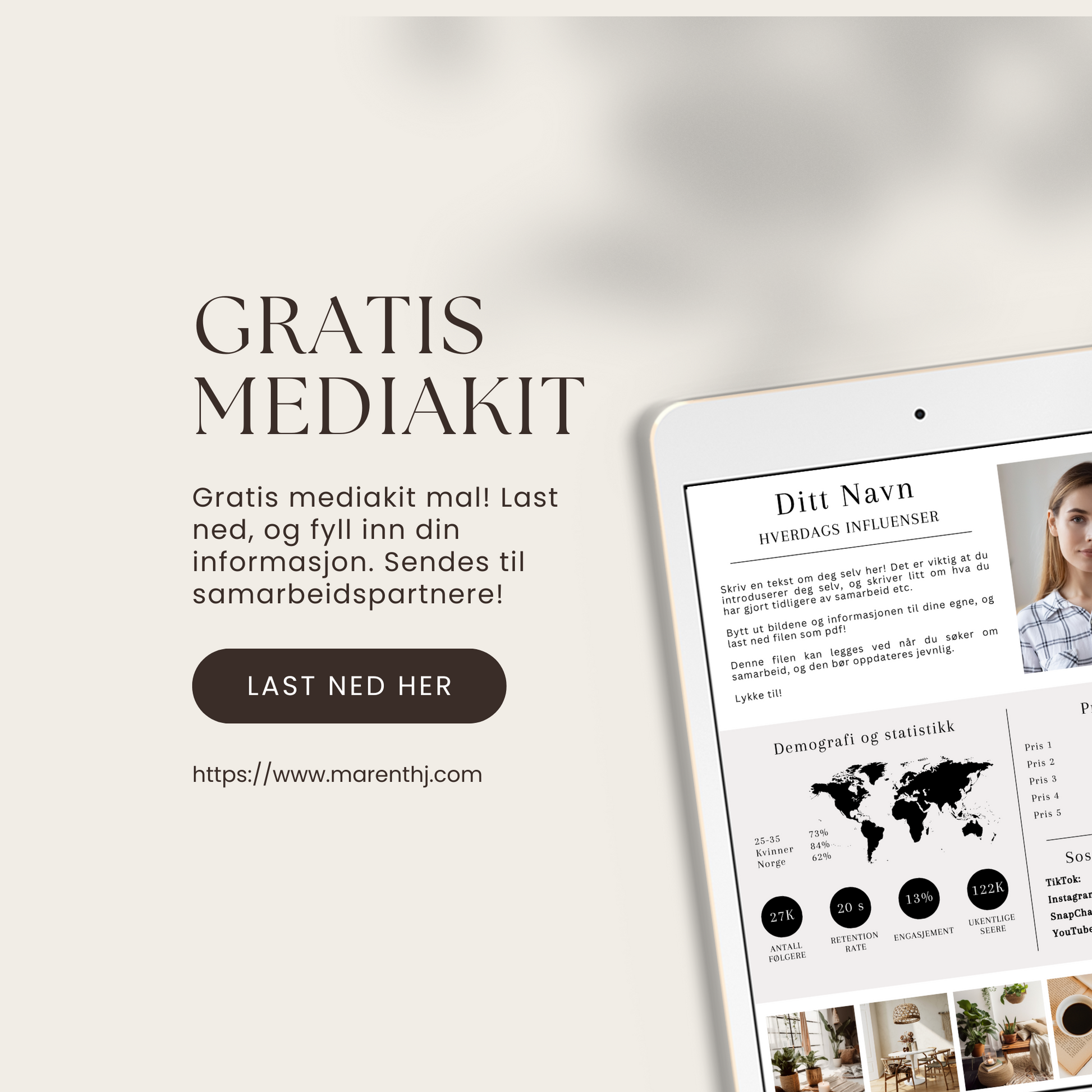 Media kit er et viktig verktøy for deg som influenser, fordi det gir en profesjonell fremstilling av deg og din merkevare til potensielle samarbeidspartnere, sponsorer og andre interessenter. Det er mange samarbeidspartnere som etterspør mediakit for vurdering av samarbeid, og det fungerer litt som en CV i influenserverden.
