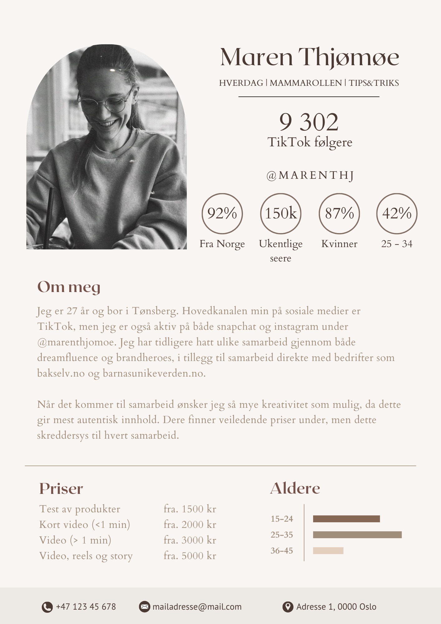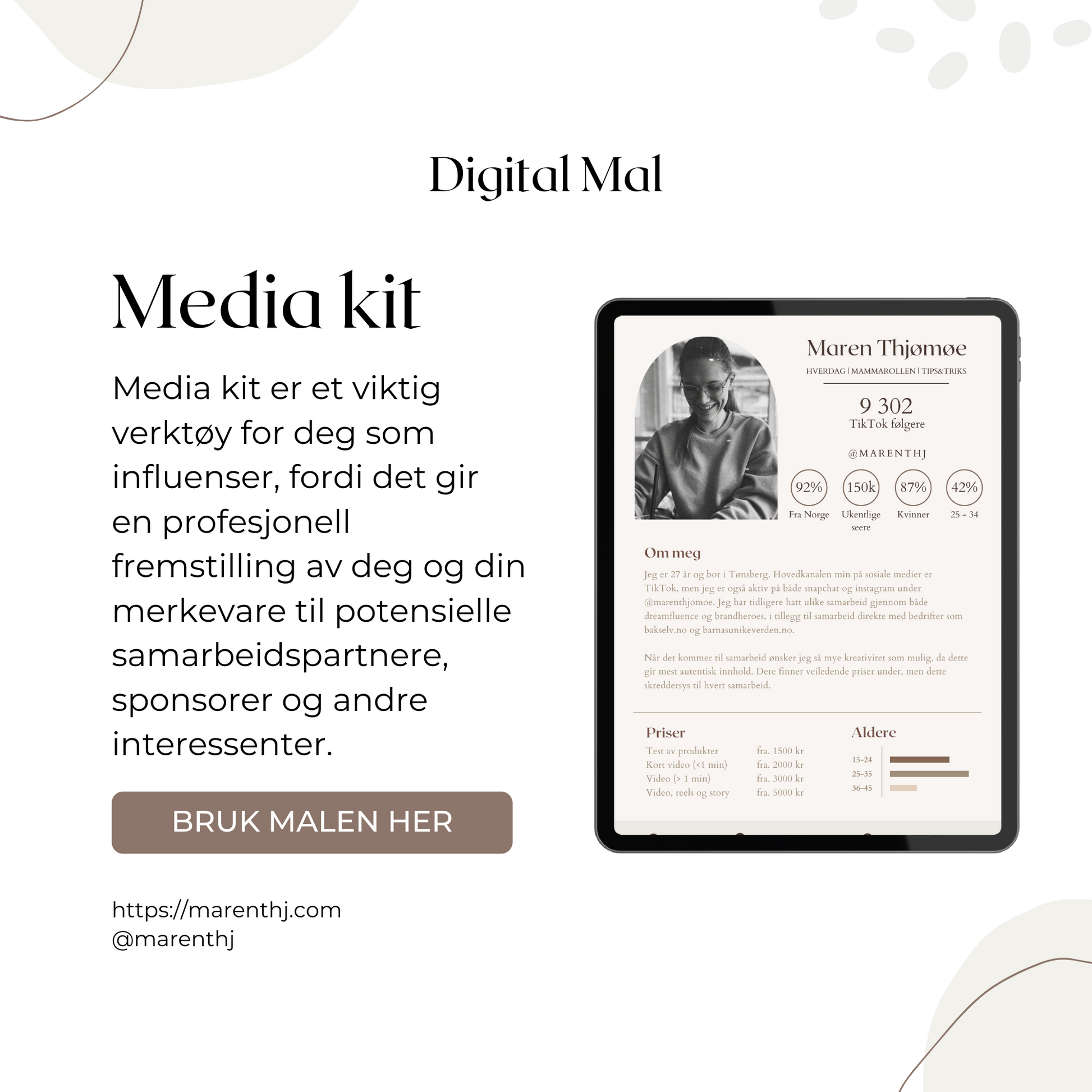Media kit er et viktig verktøy for deg som influenser, fordi det gir en profesjonell fremstilling av deg og din merkevare til potensielle samarbeidspartnere, sponsorer og andre interessenter. Det er mange samarbeidspartnere som etterspør mediakit for vurdering av samarbeid, og det fungerer litt som en CV i influenserverden.