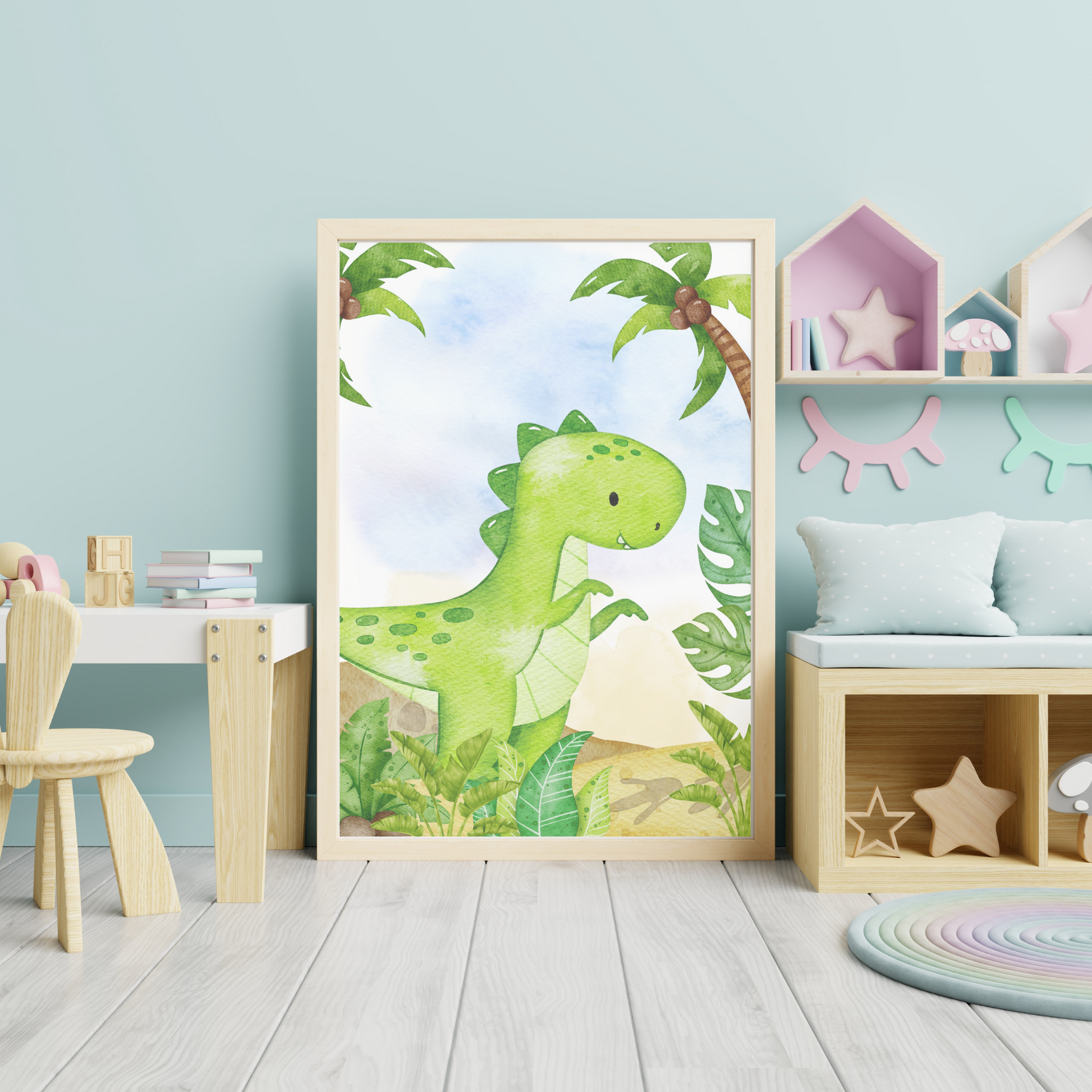 Gjør barnerommet til et inspirerende og kreativt fristed med fargerike plakater. Disse plakatene er ikke bare dekorative, men også pedagogiske verktøy som kan vekke barnas nysgjerrighet og interesse for dyreliv. Denne plakaten er en del av en serie med dinosaurplakater, som jeg designet til vår sønns barnerom.