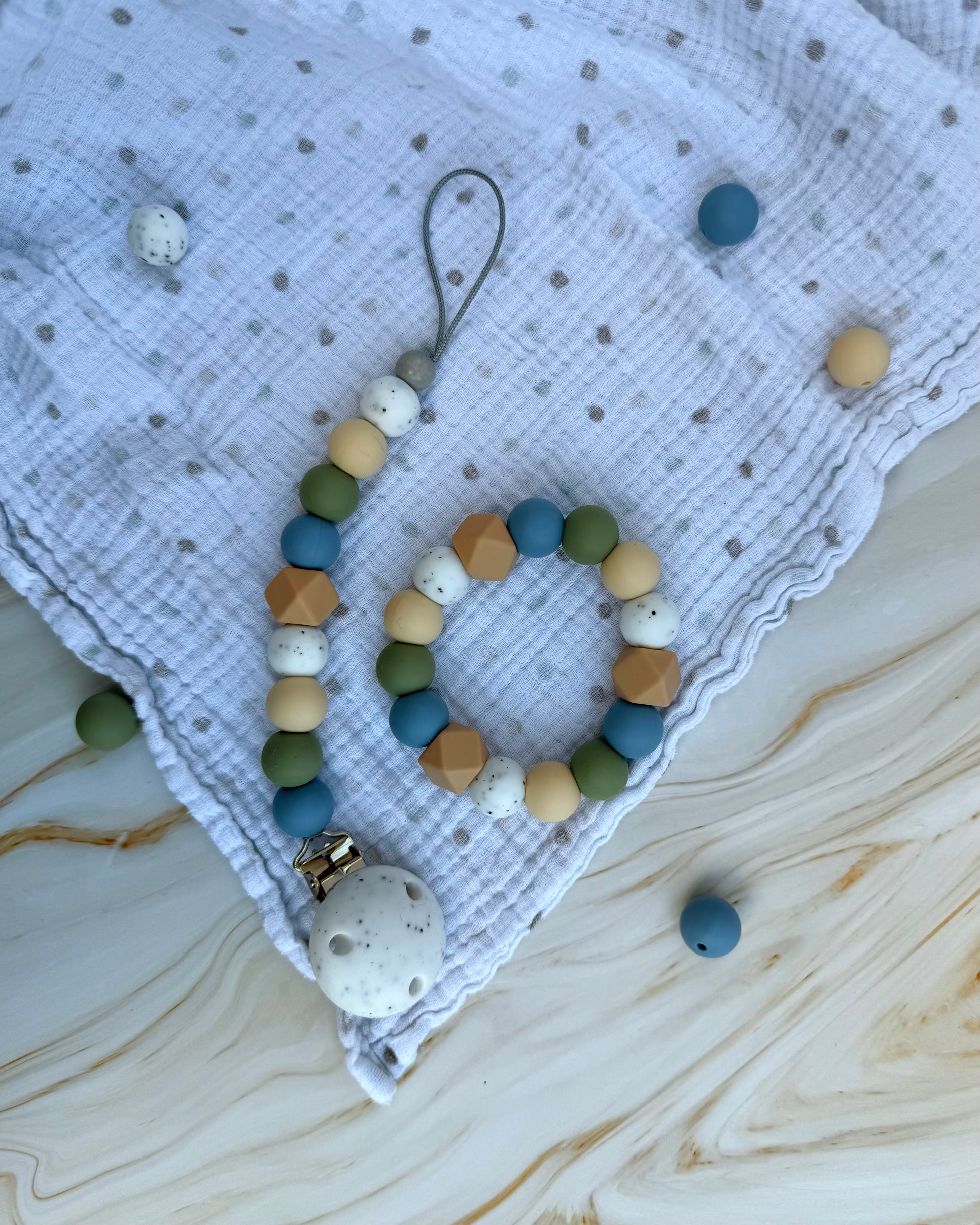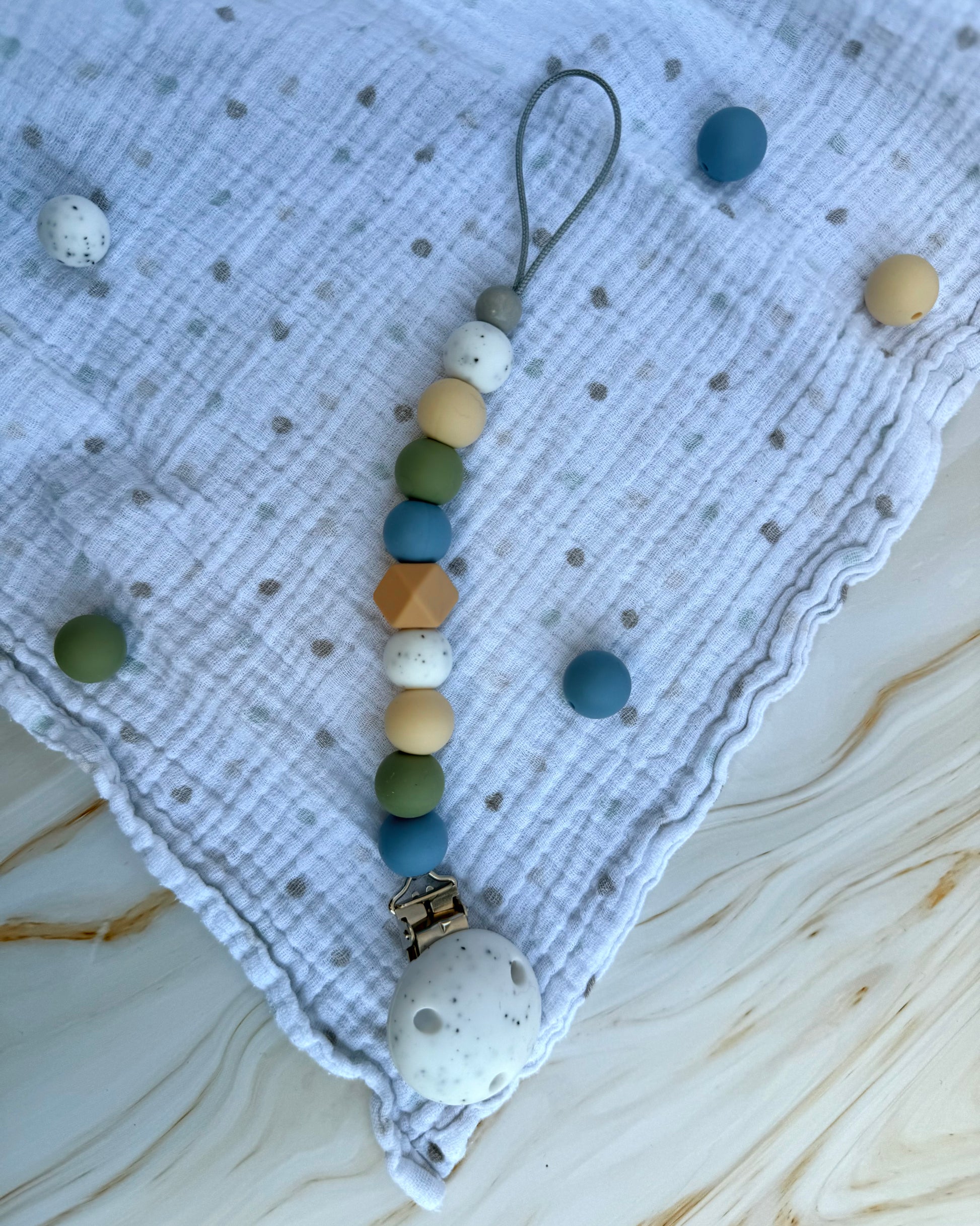 Hold smokken eller siteringen innen rekkevidde med denne håndlagde smokkelenken. Laget med BPA-frie silikonperler og slitesterk nylontråd. En trygg og praktisk løsning som hindrer at smokken faller på gulvet.