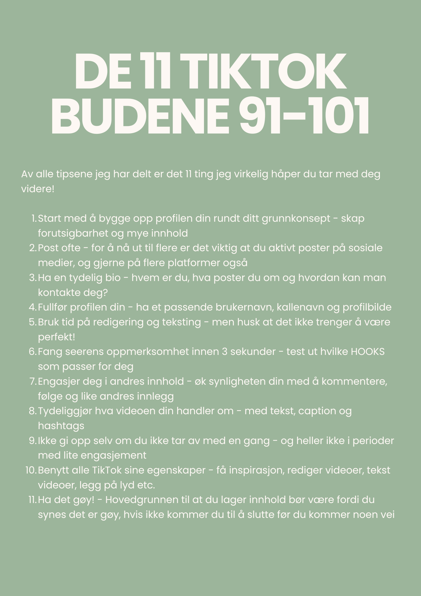 I denne guiden deler jeg 101 tips om hvordan man kan lykkes på sosiale medier, med hovedfokus på TikTok. Guiden er spesifikt rettet mot en norsk publikum, og norske skapere.